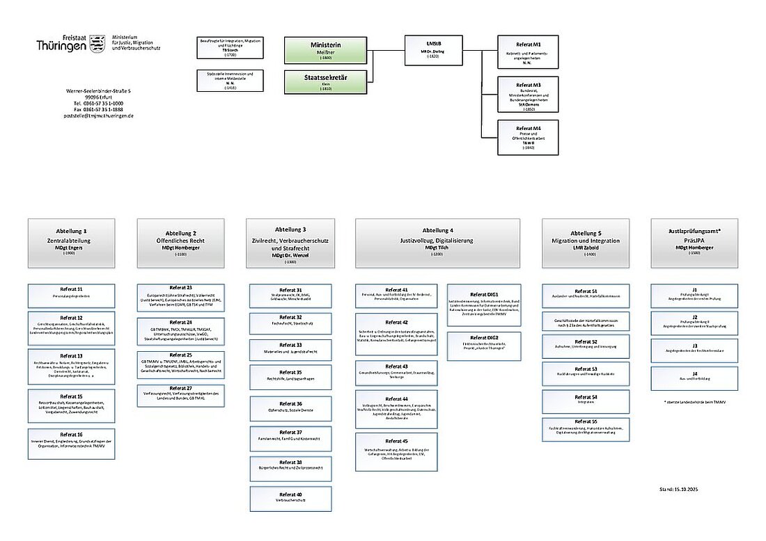 Organigramm des Thüringer Ministeriums für Justiz, Migration und Verbraucherschutz